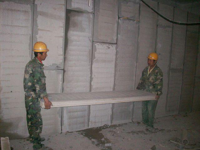 1.放线、抬板: 在墙板安装部位弹基线与板底或梁底基线垂直,保证安装墙板平直,块1.49平方的墙板两人能搬运自如。